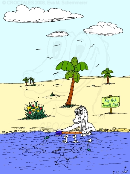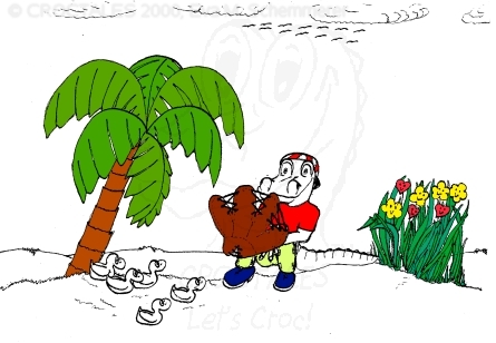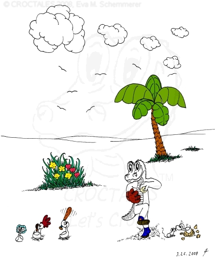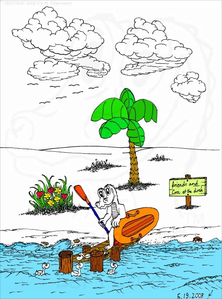 CROCTALES - Let's Croc! Your South-Florida comic for the young and the young at heart. Starring: CROC the alligator, four little orphan ducks and the Cookie-Mouse, of course with lots of guests and visitors; snowbirds included. With CROC philosophy & advice including our own version of online banking and daylight saving, our personal donut & diet site, a new learning site for kids, our EconCOMICAL task force, the LITTLE GREEN PLANET series, a trip around the world, Florida snap shots, croc history & evolution, funny weather reports, lots of duck talk, classifieds & jobs, a wild goose/duck chase, sports & events including GOLFING, the Super Bowl and much, much more. Croc's story & adventures. Cartoon ducks in action. The shy Cookie-Mouse learning something new, not just English and new words but interesting facts about Italy, Florida, the FL state fruit: orange and how kids can make a difference. Croc's comic archives, ducks can('t) spell - go figure, word games, reading between the lines, a little Italian and German and even Chinese. Have fun! THANK YOU for stopping by- Let's Croc!CROCTALES - Lets Croc - DAS Florida Comic für junge und jung gebliebene, mit einem Alligator namens Croc, vier frechen Enten und der schüchternen Cookie-Maus. VIEL SPASS bei unserer Version von Online-Banking, der EconComical Task Force, der neuen CROCTALES for KIDS Lernseite, der Serie über unseren kleinen grünen Planeten - our little green planet - mit Raumfahrt Comics und einer Lösung für die Probleme mit dem WC in der ISS, Astrologie, neue Sternbilder, unsere nicht ganz ernst zu nehmenden Diät Vorschläge, CROCTALES Geschichte & Evolution, Florida Wetter, Hurrikane und Tornados, Kummerkasten und Ratschläge der etwas anderen Art, Sport & Events, Spaß für Golfer, Football und der Super Bowl, CROC Philosophie und sonstiger Unsinn. VIEL SPASS und LETS CROC!