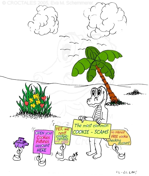 CROCTALES - Let's Croc! Your South-Florida comic for the young and the young at heart. Starring: CROC the alligator, four little orphan ducks and the Cookie-Mouse, of course with lots of guests and visitors; snowbirds included. With CROC philosophy & advice including our own version of online banking and daylight saving, our personal donut & diet site, a new learning site for kids, our EconCOMICAL task force, the LITTLE GREEN PLANET series, a trip around the world, Florida snap shots, croc history & evolution, funny weather reports, lots of duck talk, classifieds & jobs, a wild goose/duck chase, sports & events including GOLFING, the Super Bowl and much, much more. Croc's story & adventures. Cartoon ducks in action. The shy Cookie-Mouse learning something new, not just English and new words but interesting facts about Italy, Florida, the FL state fruit: orange and how kids can make a difference. Croc's comic archives, ducks can('t) spell - go figure, word games, reading between the lines, a little Italian and German and even Chinese. Have fun! THANK YOU for stopping by- Let's Croc!CROCTALES - Lets Croc - DAS Florida Comic für junge und jung gebliebene, mit einem Alligator namens Croc, vier frechen Enten und der schüchternen Cookie-Maus. VIEL SPASS bei unserer Version von Online-Banking, der EconComical Task Force, der neuen CROCTALES for KIDS Lernseite, der Serie über unseren kleinen grünen Planeten - our little green planet - mit Raumfahrt Comics und einer Lösung für die Probleme mit dem WC in der ISS, Astrologie, neue Sternbilder, unsere nicht ganz ernst zu nehmenden Diät Vorschläge, CROCTALES Geschichte & Evolution, Florida Wetter, Hurrikane und Tornados, Kummerkasten und Ratschläge der etwas anderen Art, Sport & Events, Spaß für Golfer, Football und der Super Bowl, CROC Philosophie und sonstiger Unsinn. VIEL SPASS und LETS CROC!